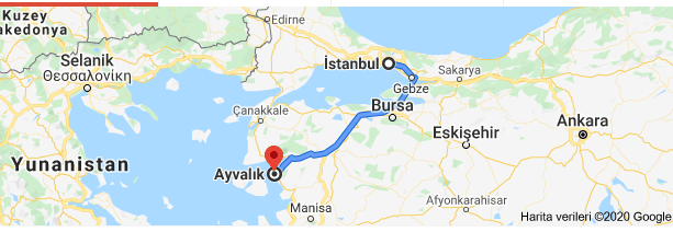 Balıkesir ili ege kıyısında ormanı denizi kumu güneşi ve zeytinyağı ile ünlü şirin ilçe Ayvalık İstanbul’a Yalova Bursa Balıkesir yol güzergahı üzerinden yaklaşık 520 km, İstanbul Tekirdağ Malkara Keşan Gelibolu Çanakkale güzergahı üzerinden ise yaklaşık 500 km uzaklıktadır