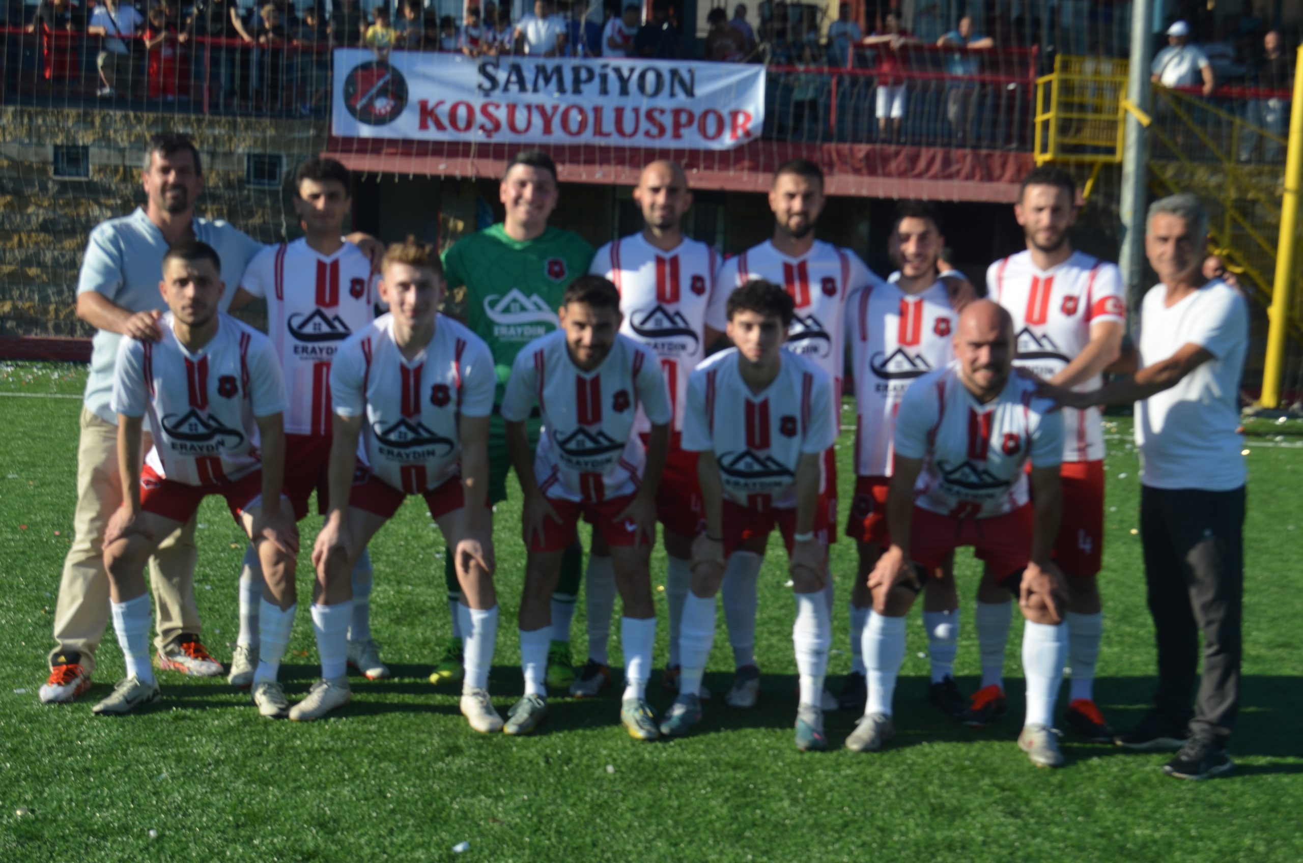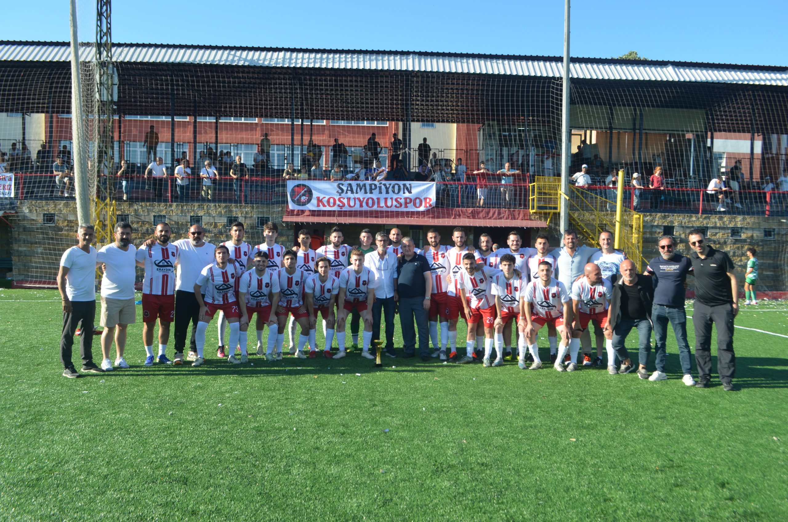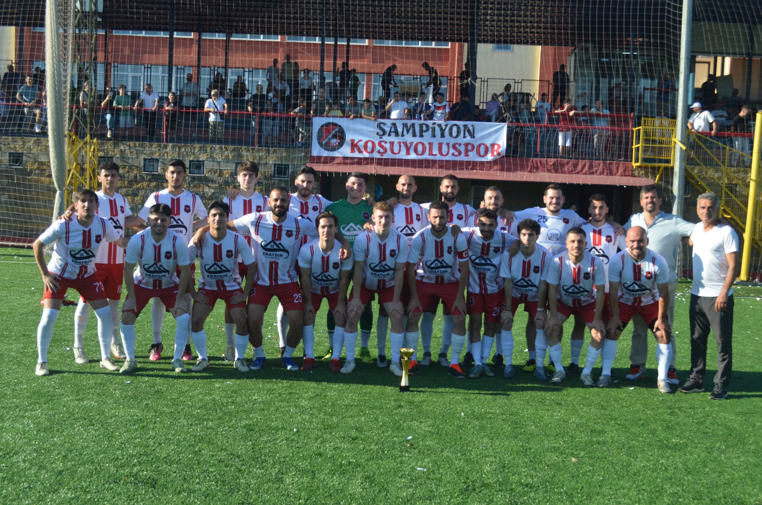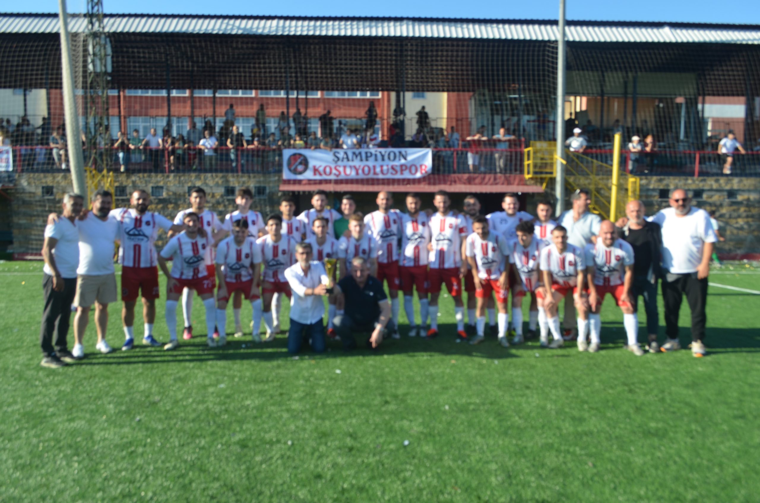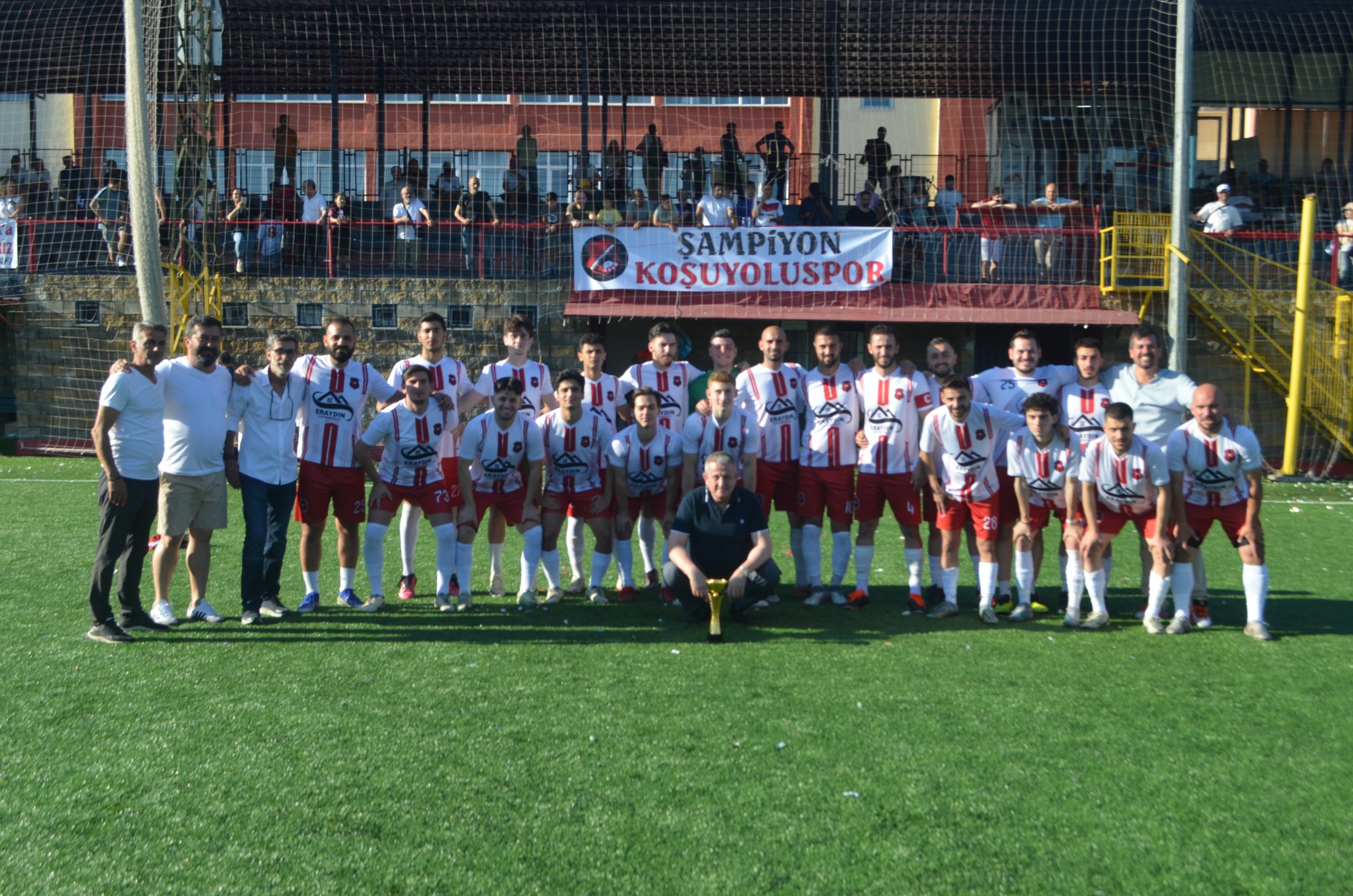 Koşuyolu sporbaşkanı yönetimi teknik ekibi ve futbolcuları kupa ile birlikte