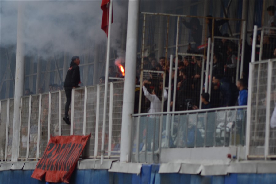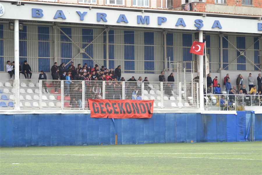 Gülsuyuspor kulübü başkanı Behram Kaçar ve yönetim kurulu üyeleriyle Gecekondu taraftar grubu Bayrampaşa belediye stadında tribünde yerlerini alarak maçı izlediler
