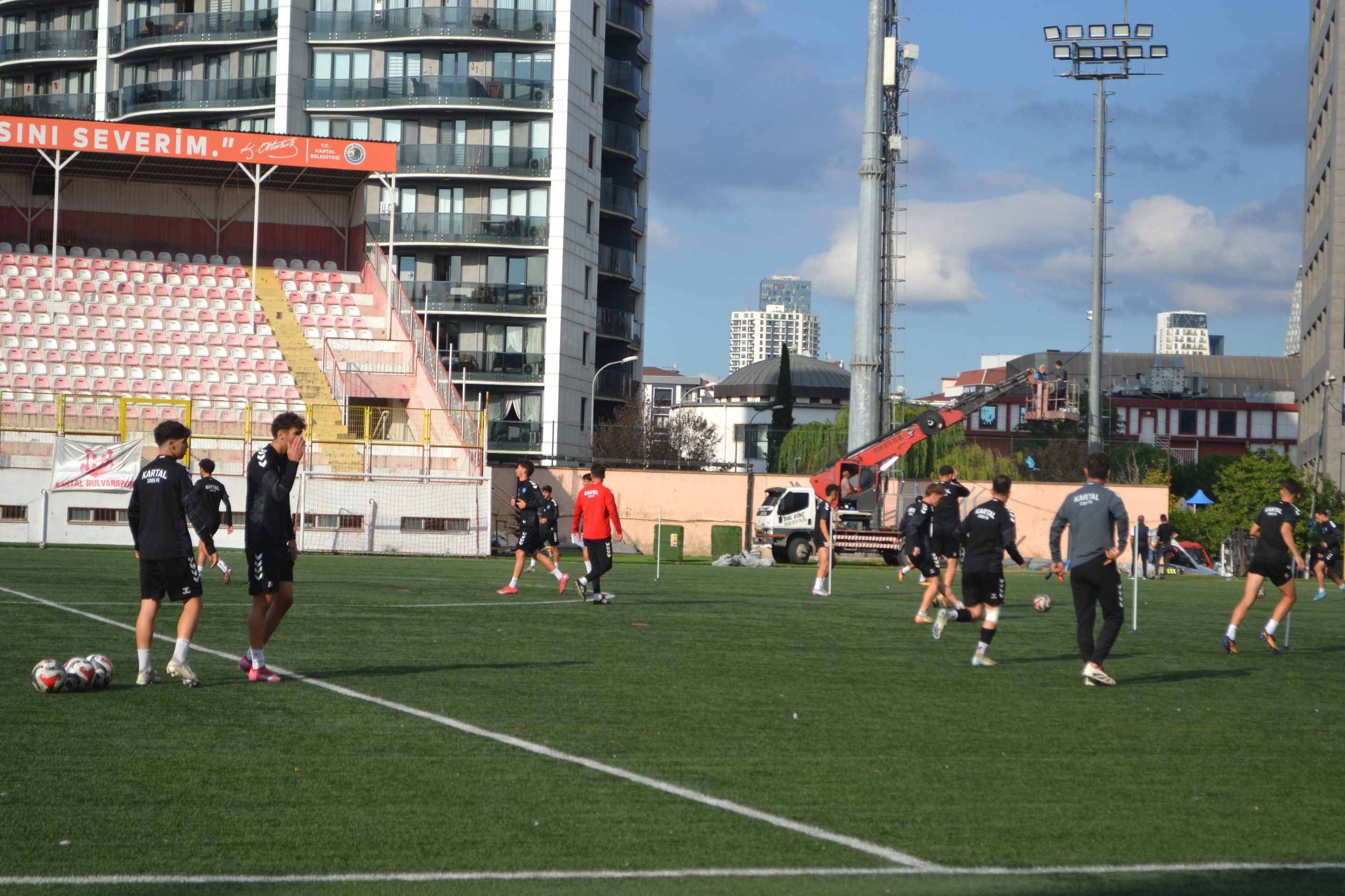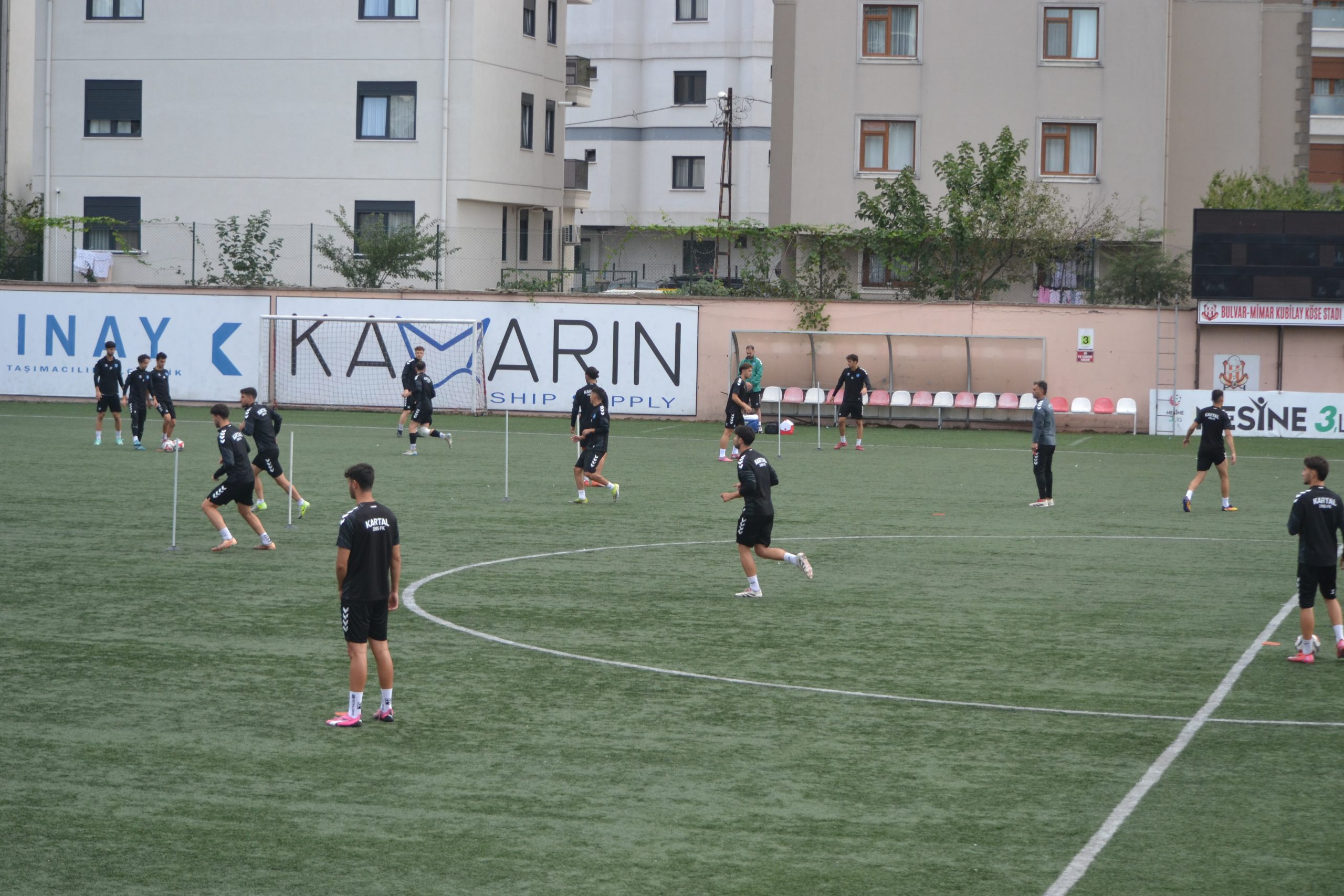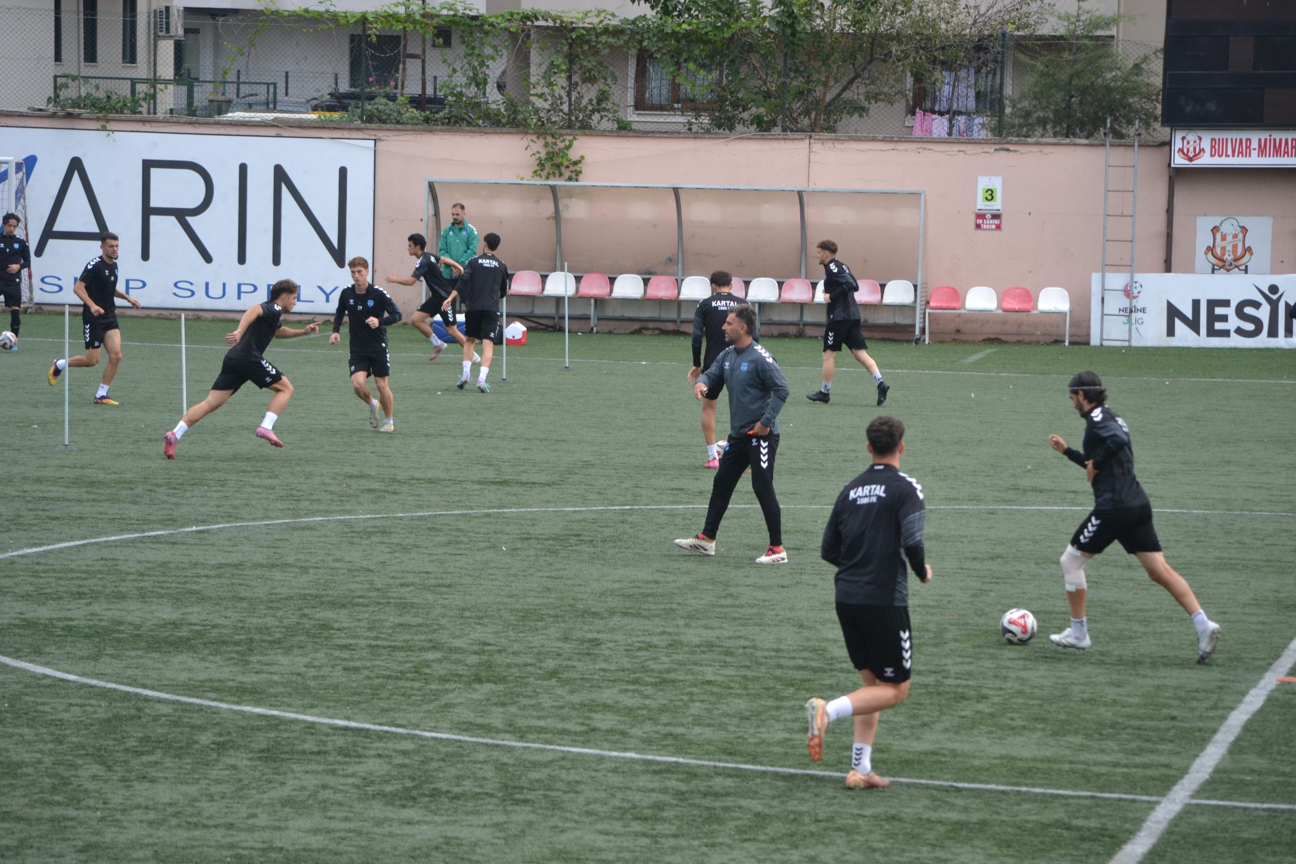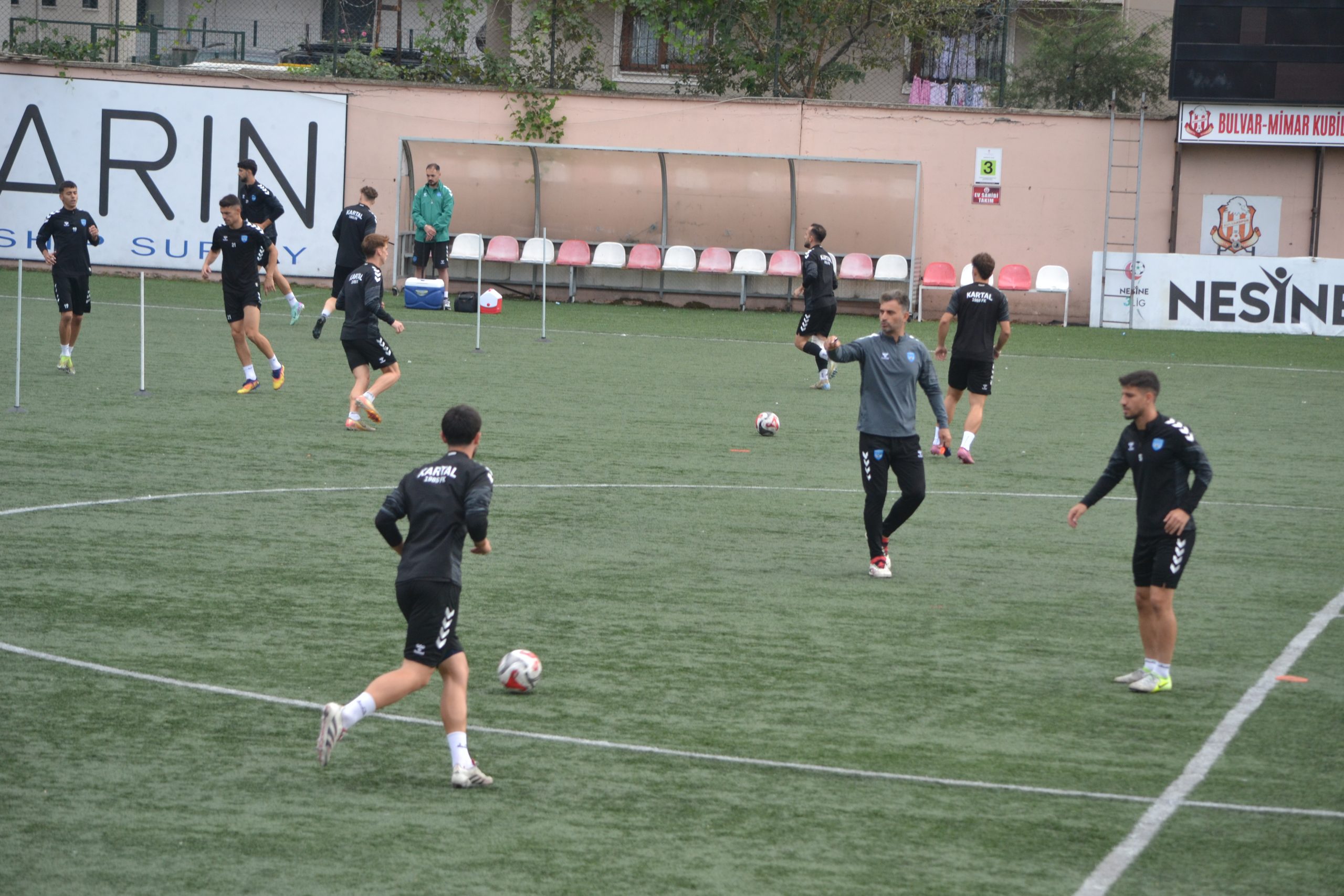 Bulvar Kubilay Köse stadında teknik sorumlu İbrahim Cezayir yönetiminde gerçekleştirilen idmanda futbolcular ısınmanın ardından Straching Koordinasyon hareketli oyunda top kontrolü isabetli pas boşa çıkma çalışması yaptılar