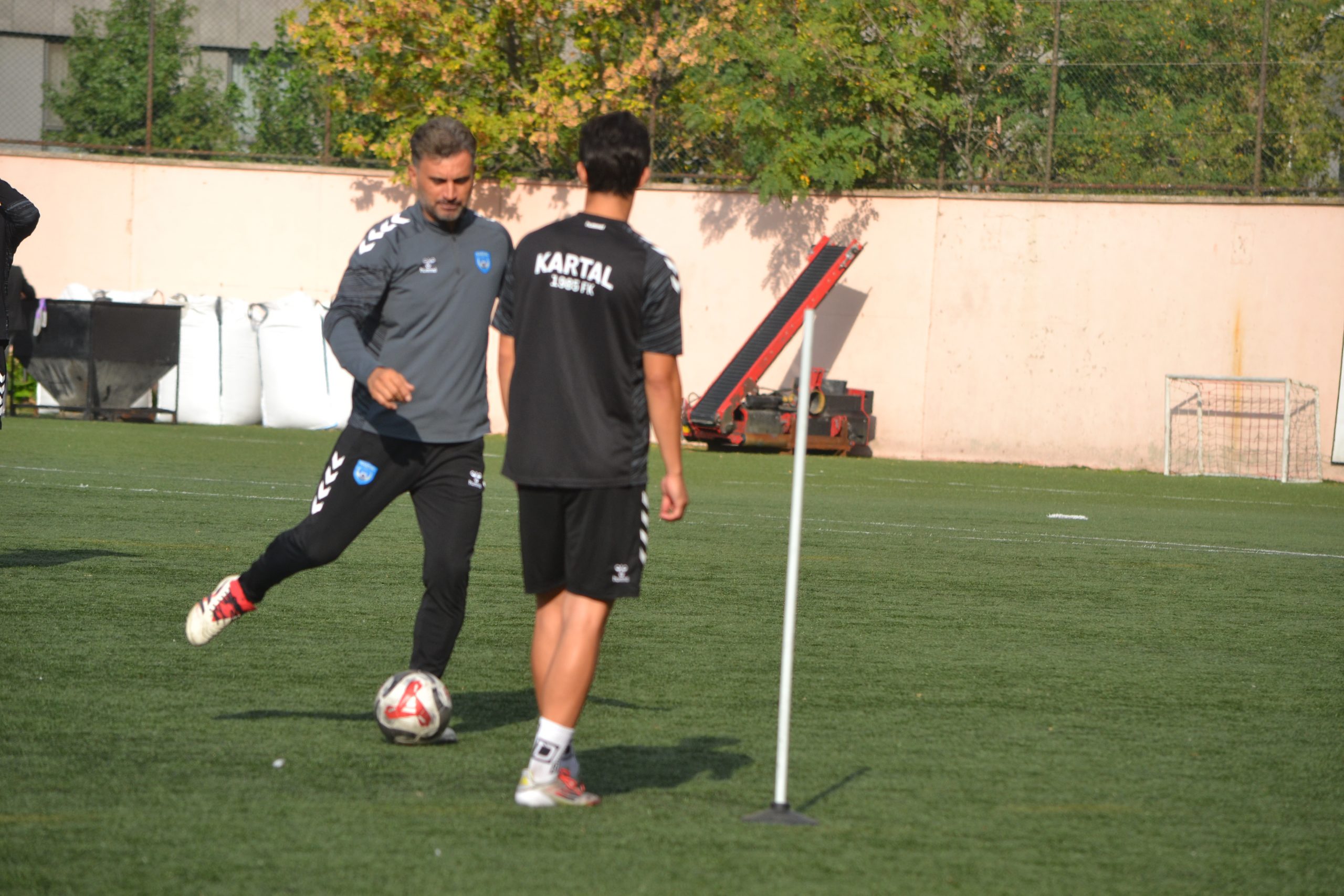 Teknik sorumlu İbrahim Cezayir idmanda oyunu sık sık durdurarak futbolcularına yapılmasını istediği hareketlerin doğrusunu göstererek uyardı